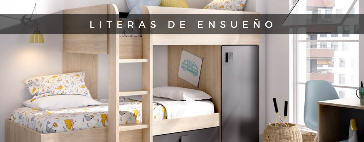 CAMA ALTA CON ESCRITORIO Y ARMARIO BINIKI