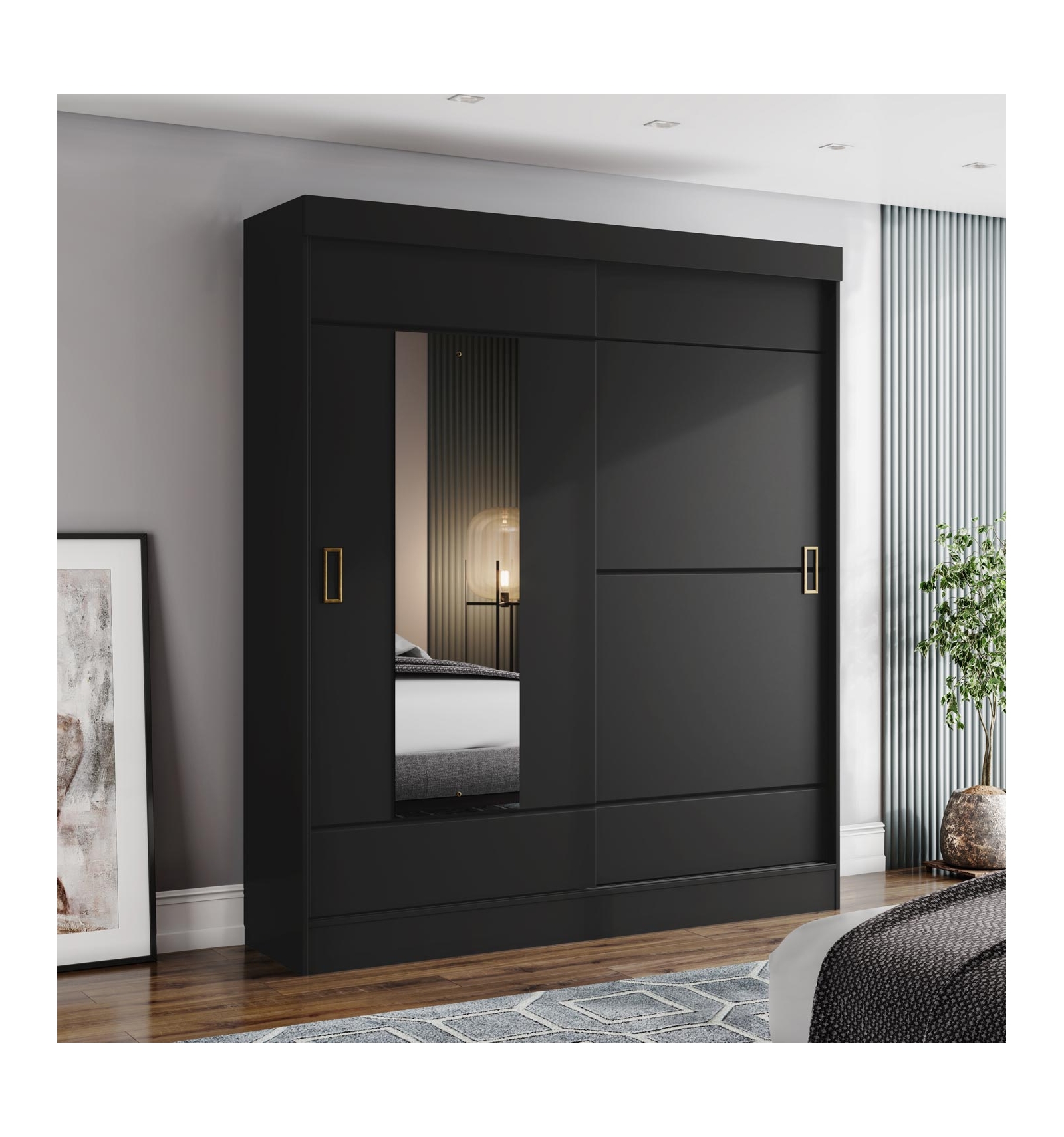 Con un diseño moderno y elegante, este armario de puertas correderas no sólo optimiza el espacio de tu habitación, sino que también añade un toque sofisticado.