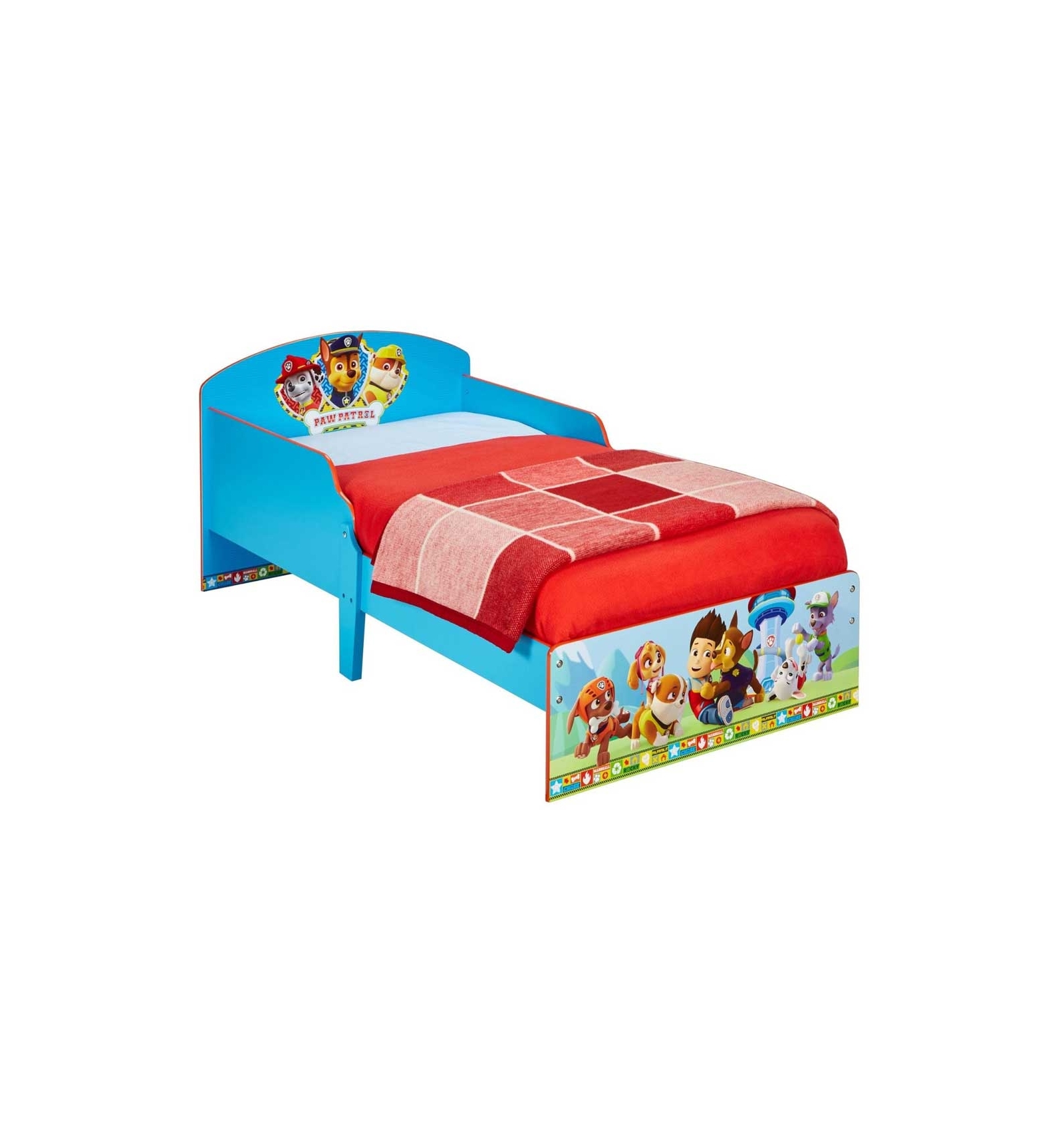 La cama infantil Patrulla Canina está fabricada en madera MDF con somier de lamas de madera MDF y decorada con los simpáticos personajes de la Patrulla Canina. Su estructura sólida y resistente cumple con las más estrictas normas de seguridad infantil.